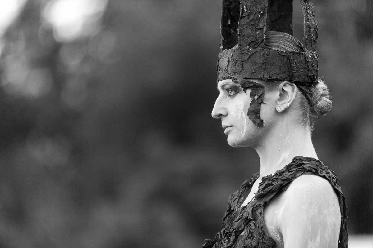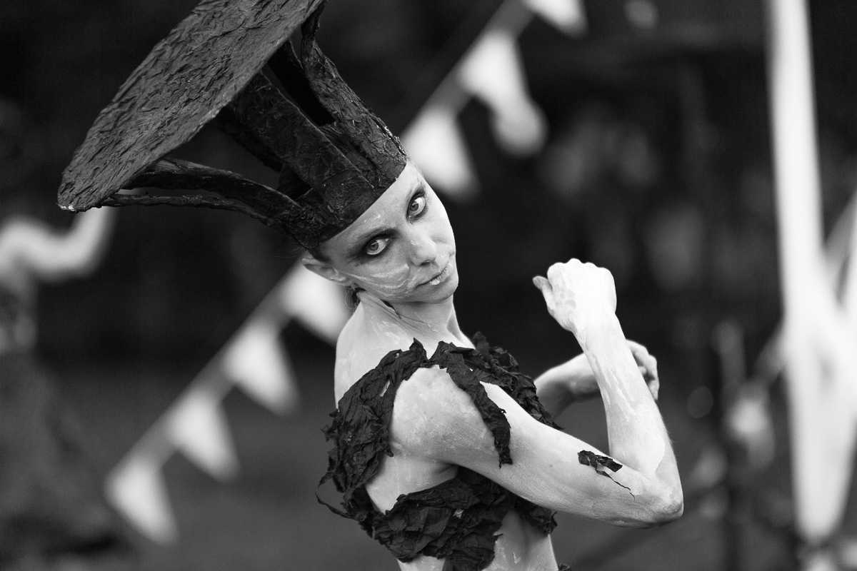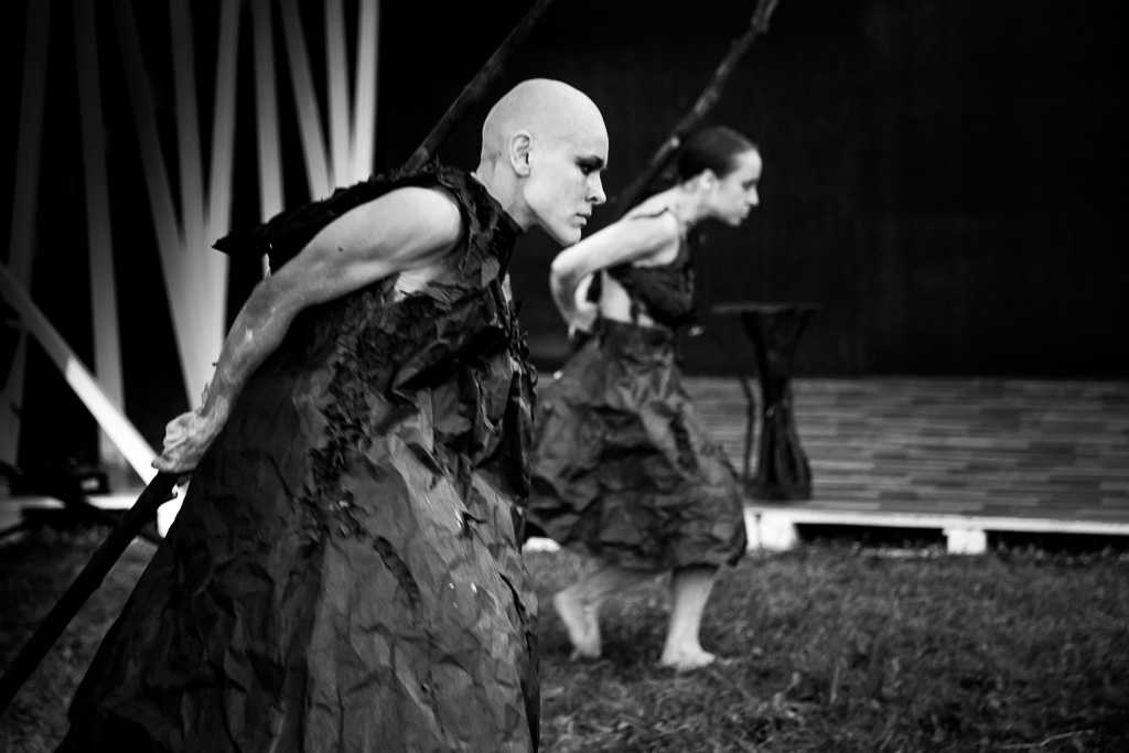 However, the performance is not only about the losses and not about the death. This story is about the life that grows through the ashes of the burnt wood. And three tall trees here are the symbols of the revival and continuation of life. But this is also just the one of possible symbols and everybody sees any sense that correlates with his cultural experience and his own stockpile of inner symbols. And that is why physical theatre is so reach in creation of meanings.