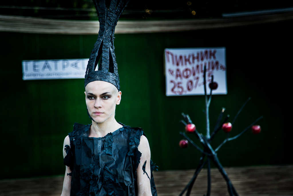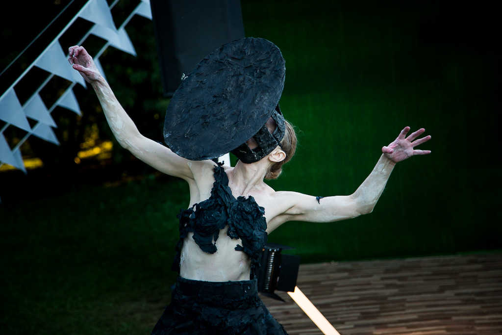 “Performance “Red Tree” is a kind of lyrical confession, it’s the memories of a real home that has burnt down one day. There was a fire that ruined the home of my childhood. And one day I came back to this place and found that three tall trees had grown from inside the skeleton of the burnt house. This caused very strong feelings in me then. This moment of meeting – with my lovely home, with my childhood memories, with the charred frame of my own past that the burnt house is symbolizing, with a new life that bloomed on the ashes – this is the time of the performance.” Lidia Kopina, director